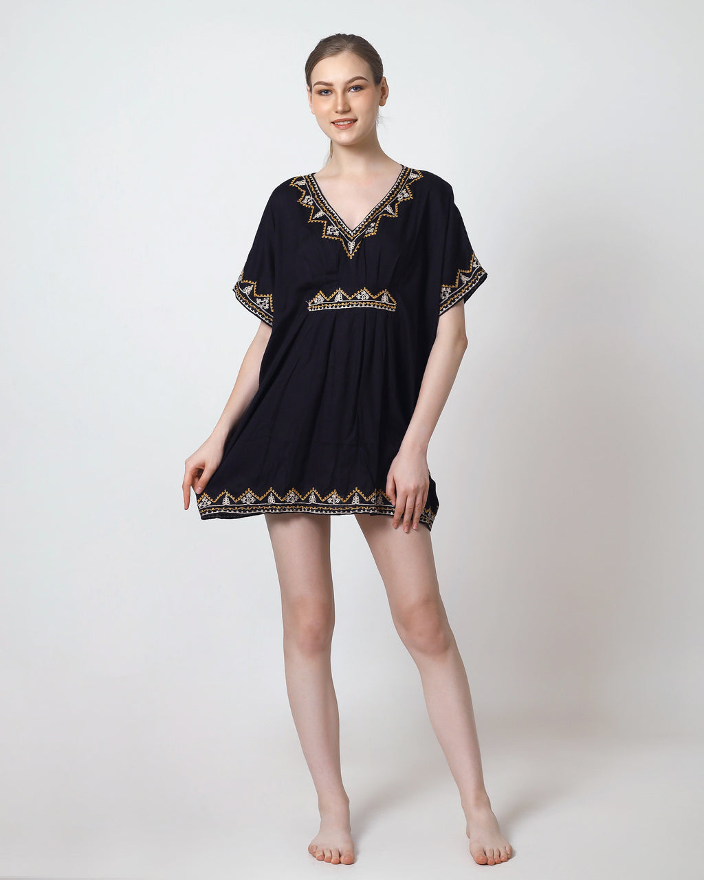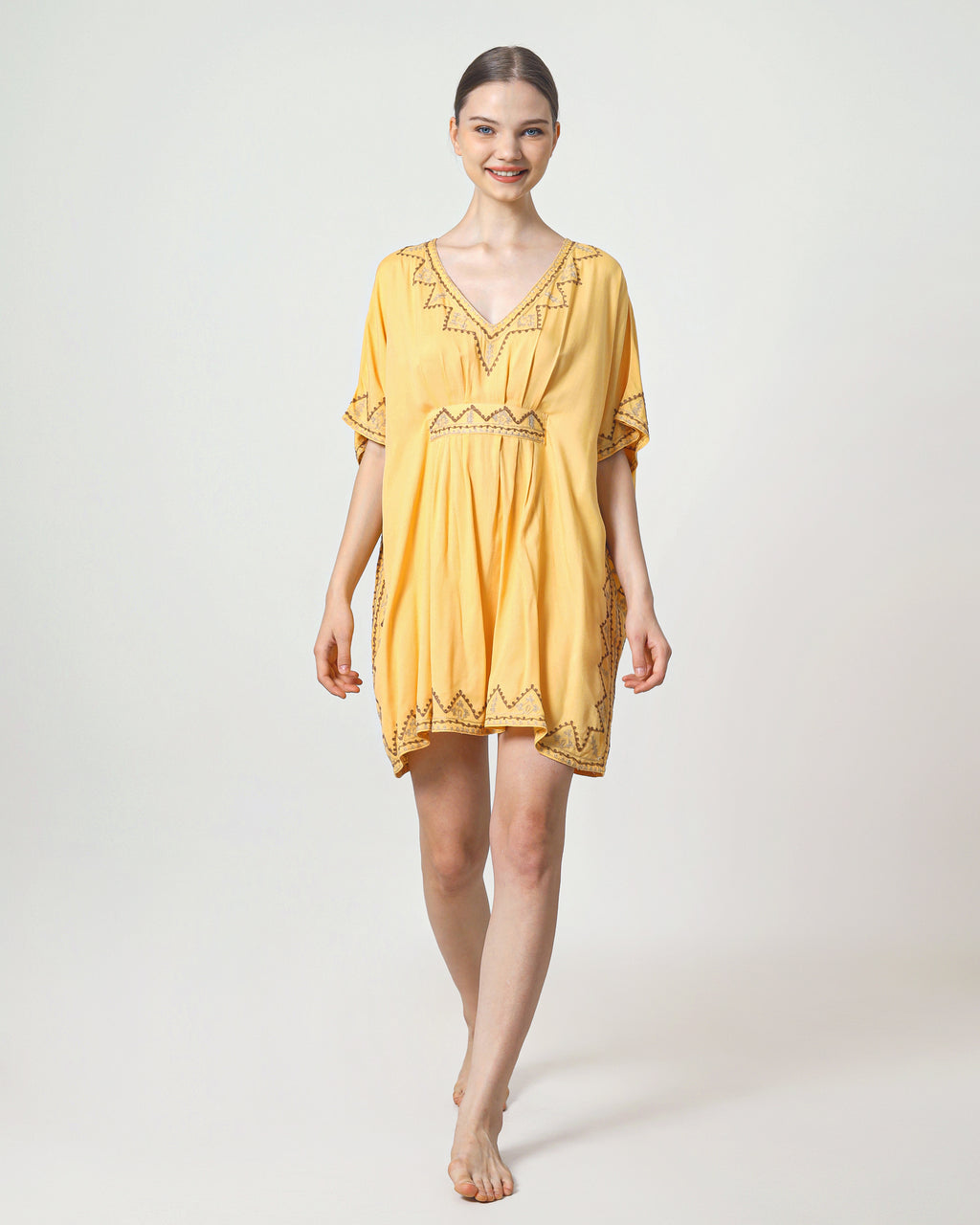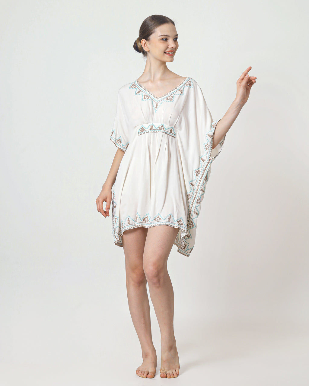 The Cielo short dress is crafted from ultra-comfortable material for maximum all-day ease. Delicate embroidery details add an elegant touch, while the carefully chosen colors create an exclusive and captivating aesthetic. Perfect for both casual looks and special occasions.Handmade by Piña Colada