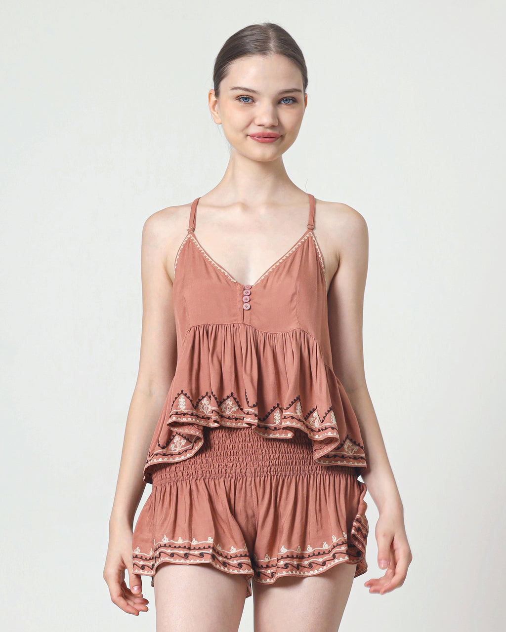 The Fitzroy tank top features delicate thin straps and intricate embroidery along the edges, combining refined craftsmanship with a lightweight, comfortable fit. Ideal for layering or wearing solo, this piece adds subtle texture and elegance to any casual or dressy outfit.Handmade By Pina Colada
