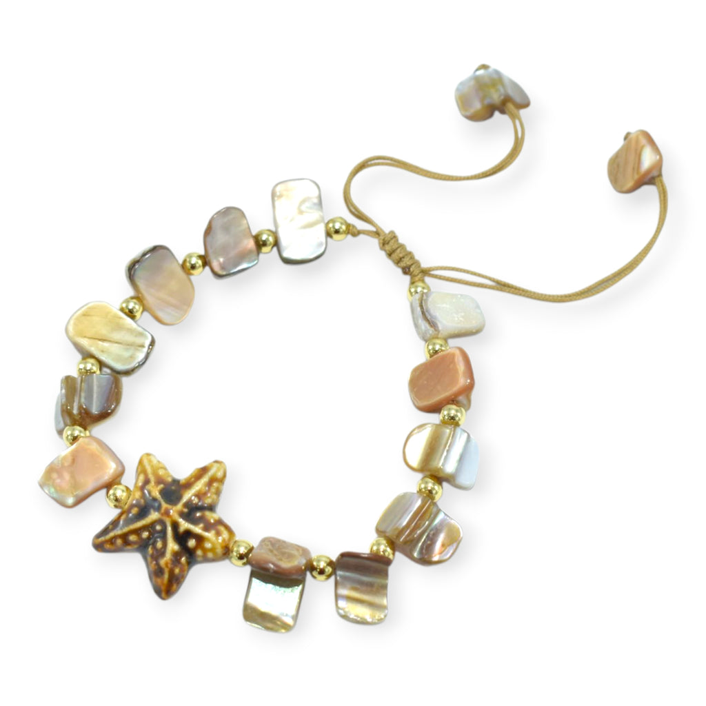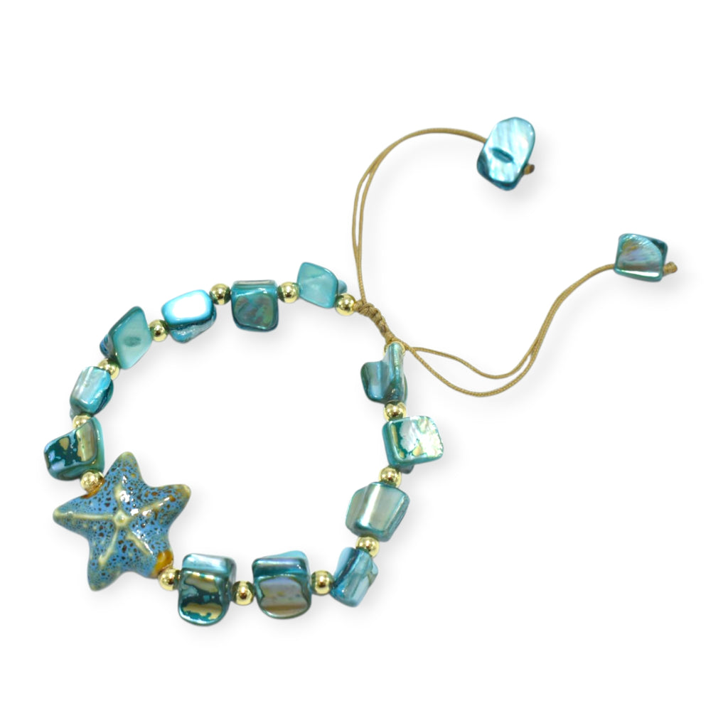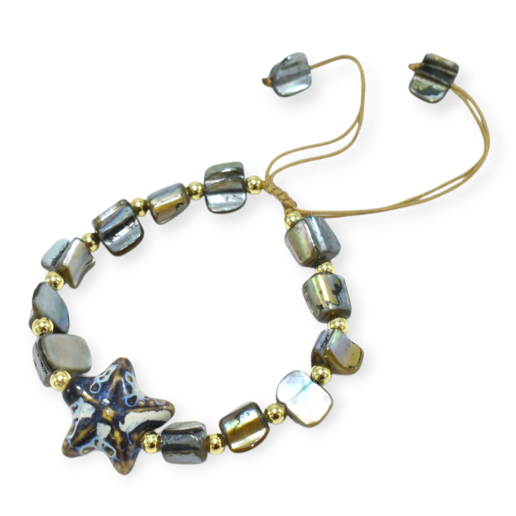Giove is a distinctive drawstring bracelet crafted from natural stone beads and adorned with charming marine-inspired charms. Each piece celebrates ocean life with carefully selected aquatic motifs, creating a unique accessory that captures the beauty of coastal aesthetics. The adjustable drawstring design ensures a comfortable fit for all wrist sizes, while the combination of earthy stone and delicate sea-themed embellishments offers versatile styling for both casual and elevated looks. Perfect for those who appreciate nature-inspired jewelry with character and individuality.Handmade By Pina Colada
