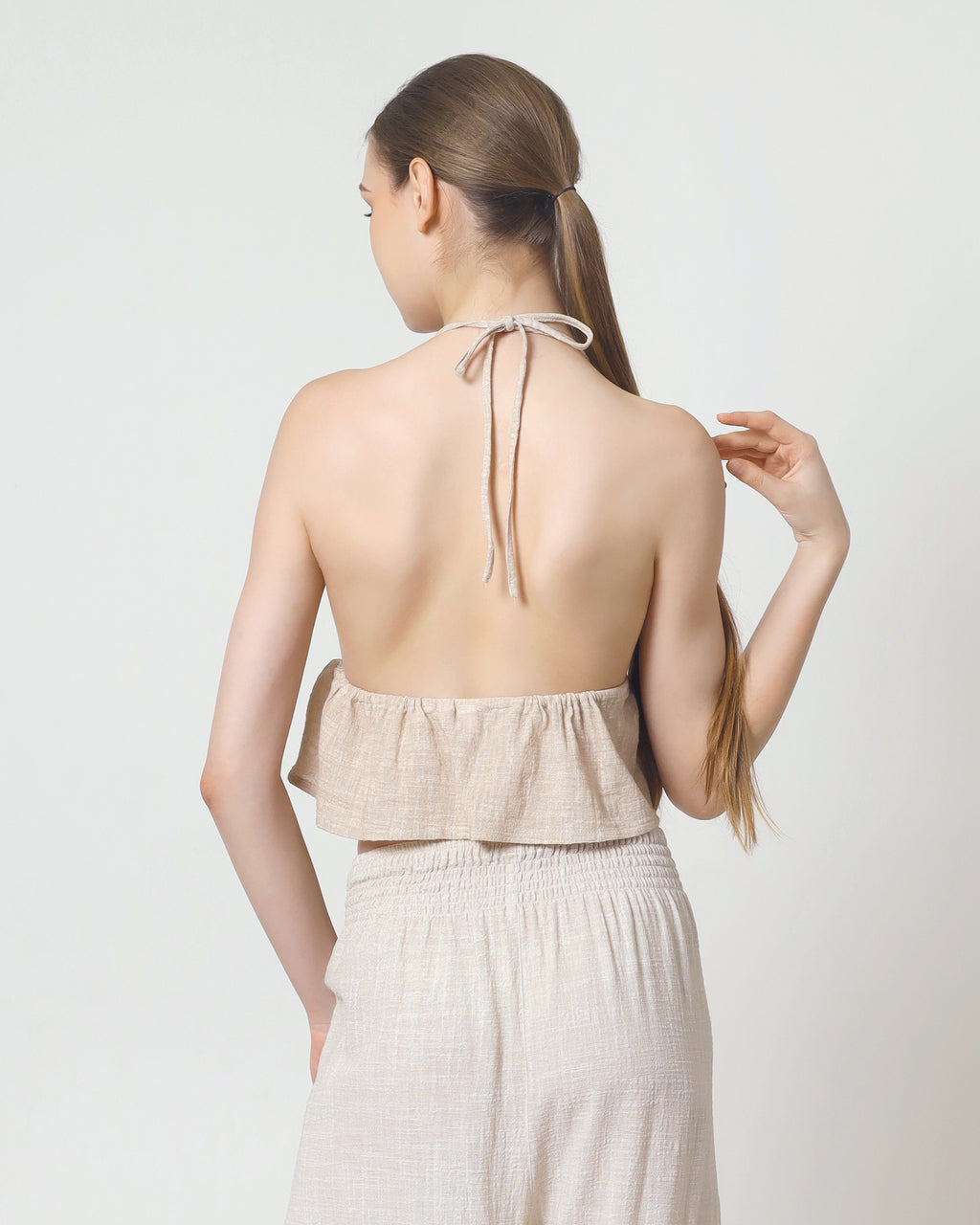 Makalu is a backless top designed to convey a sense of freedom while maintaining elegance. Featuring an open back cut, this top offers a graceful yet modern vibe, suitable for both casual and formal occasions. The chosen material ensures comfort while enhancing a sophisticated look, making Makalu the perfect choice for those who prioritize style and confidence.
