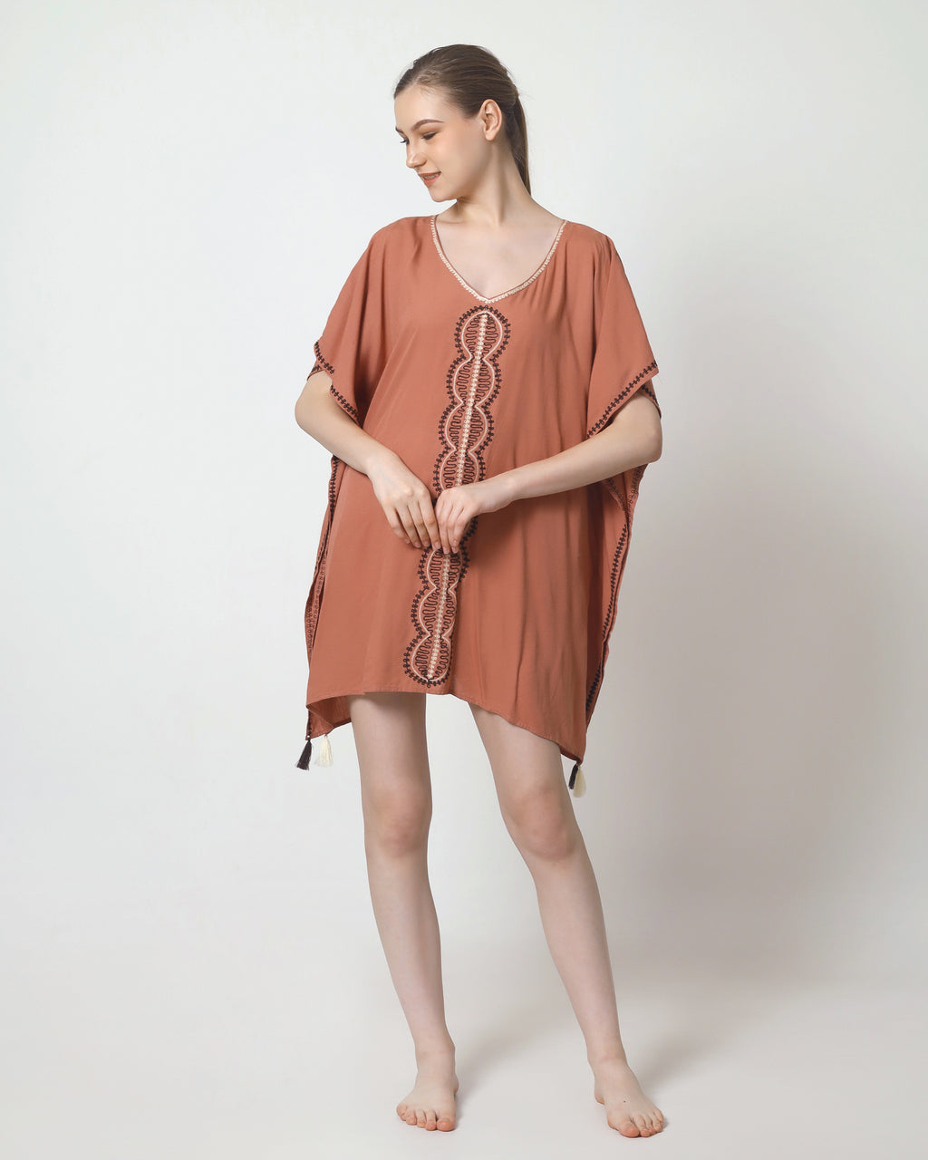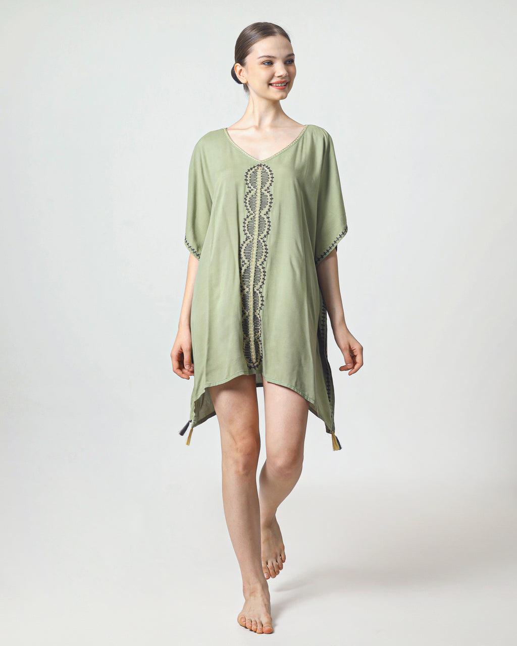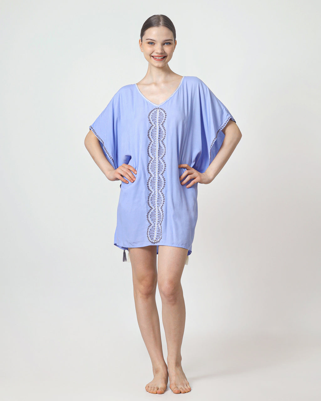 The Mar short dress is designed for maximum comfort, making it suitable for both casual and semi-formal occasions. Embroidery at the center adds an elegant artistic touch, while tassel details provide a unique and charming accent that enriches the look without being excessive. Made from lightweight, easy-to-wear material, Mar is the ideal choice for those who value both style and comfort.Handmade by Piña Colada