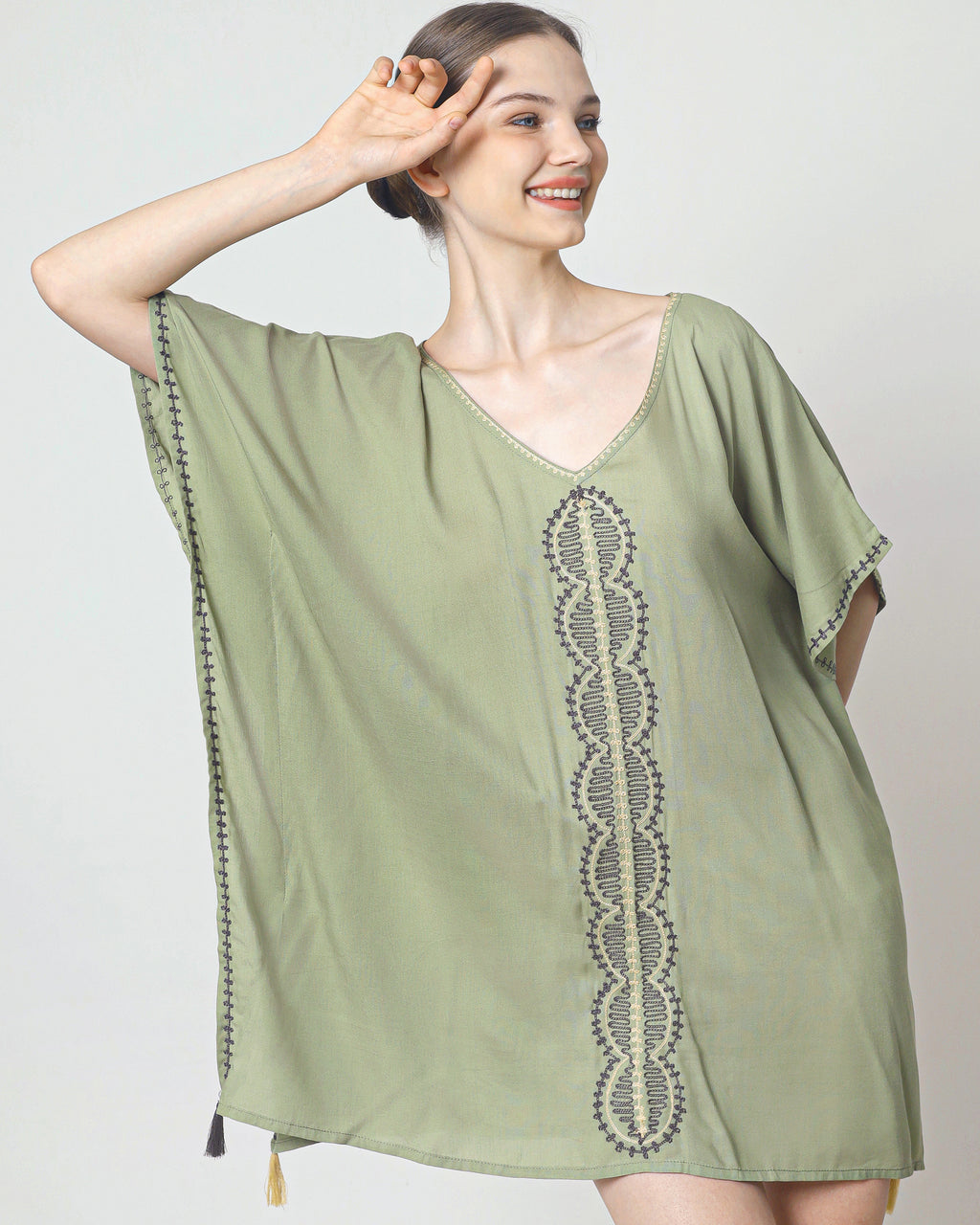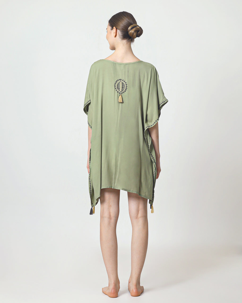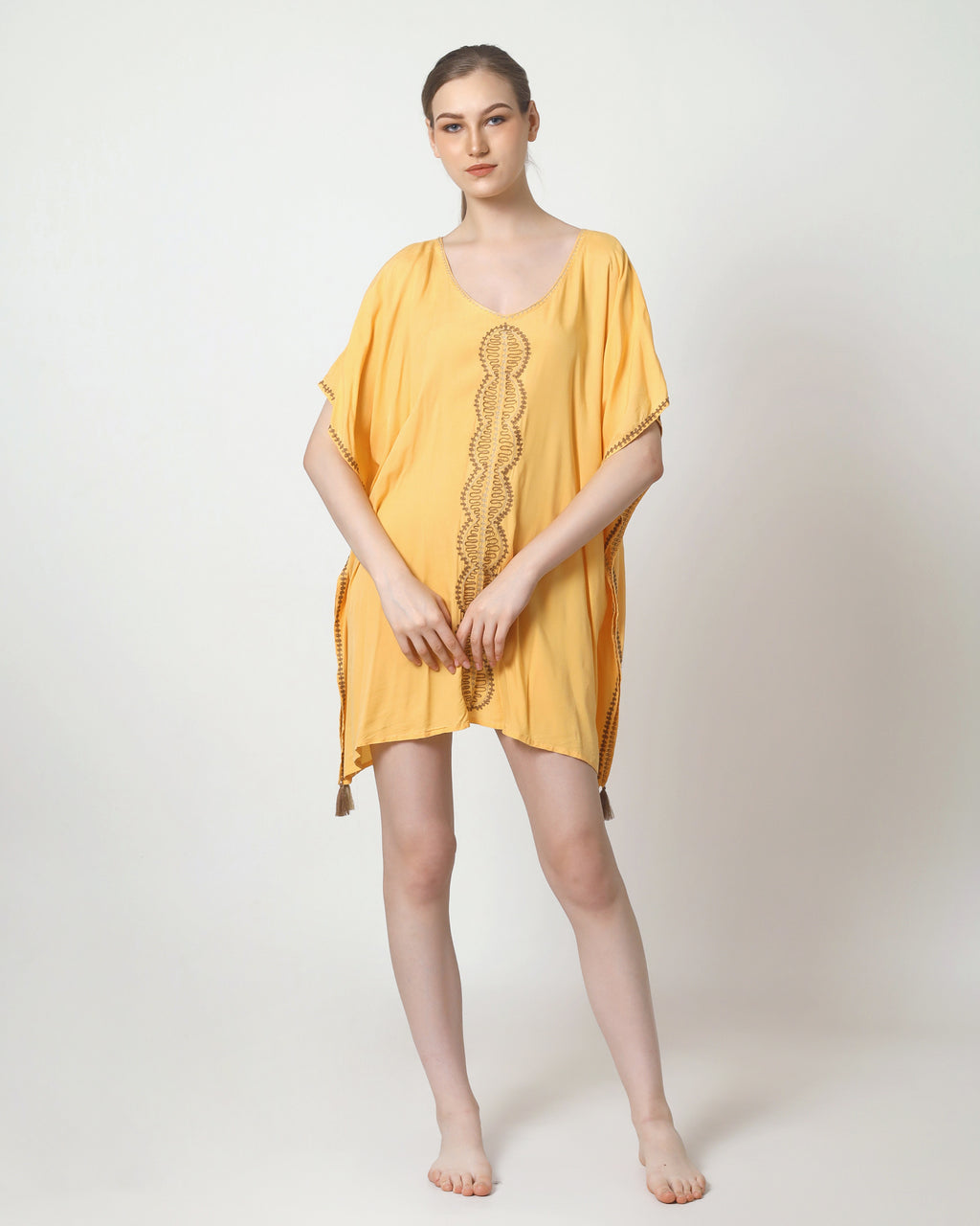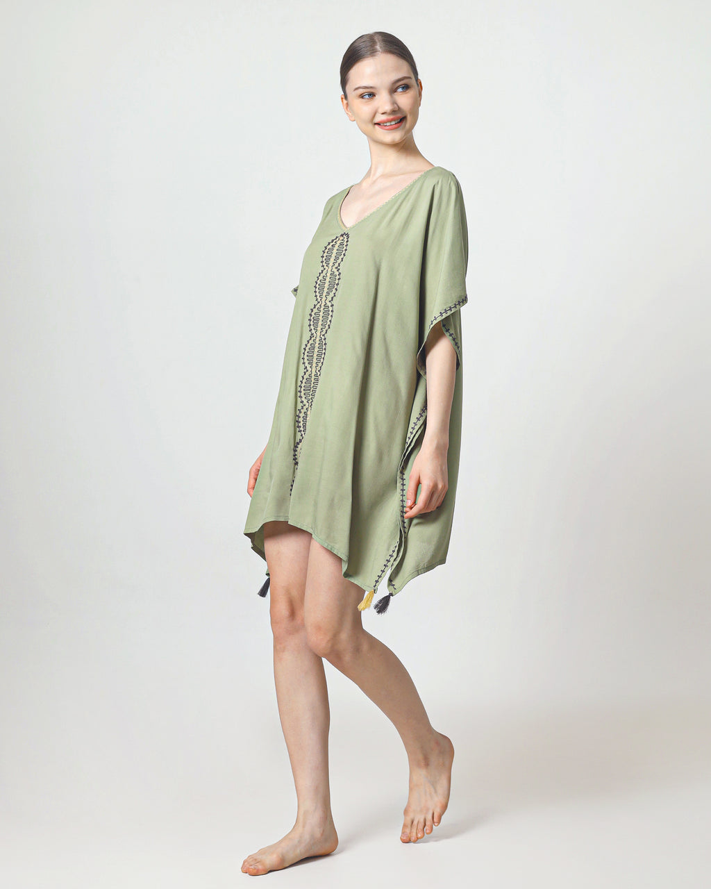 The Mar short dress is designed for maximum comfort, making it suitable for both casual and semi-formal occasions. Embroidery at the center adds an elegant artistic touch, while tassel details provide a unique and charming accent that enriches the look without being excessive. Made from lightweight, easy-to-wear material, Mar is the ideal choice for those who value both style and comfort.Handmade by Piña Colada