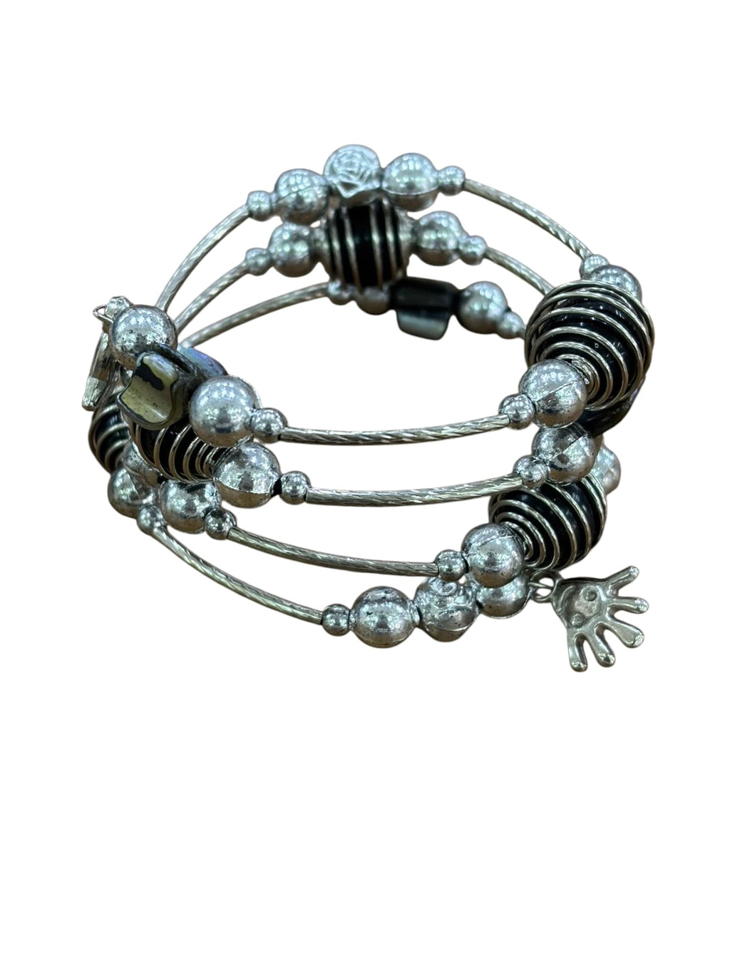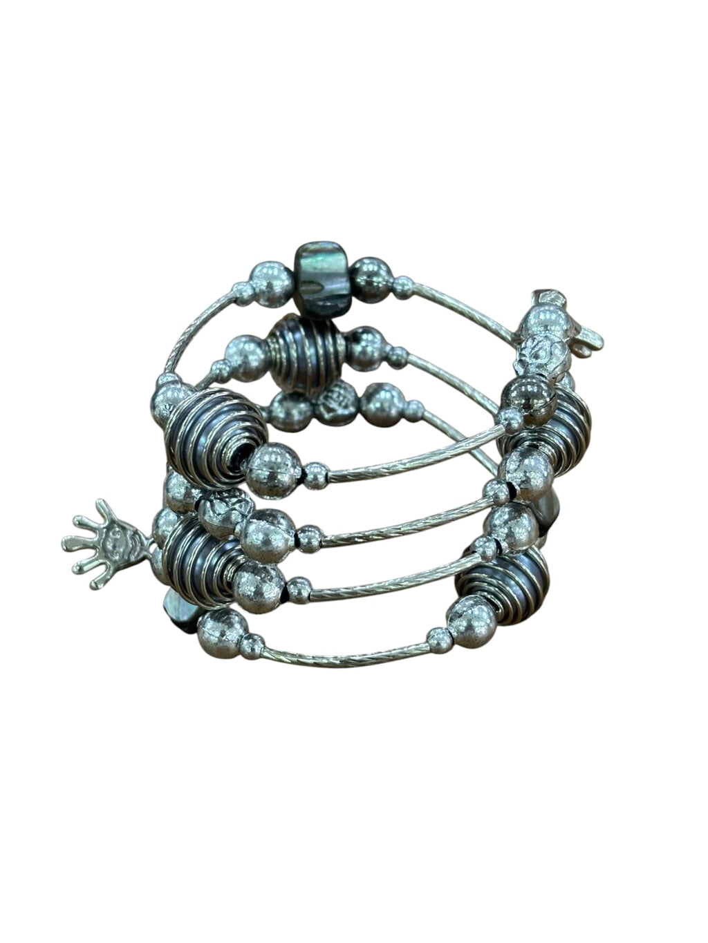 Flexible spiral bracelet adorned with vibrant multicolored resin stones. This adjustable design wraps comfortably around your wrist, conforming to your unique size for a personalized fit. The intricate spiral construction combines durability with elegant aesthetics, making it a versatile accessory for any occasion. Perfect for those seeking both style and comfort in their jewelry collection.