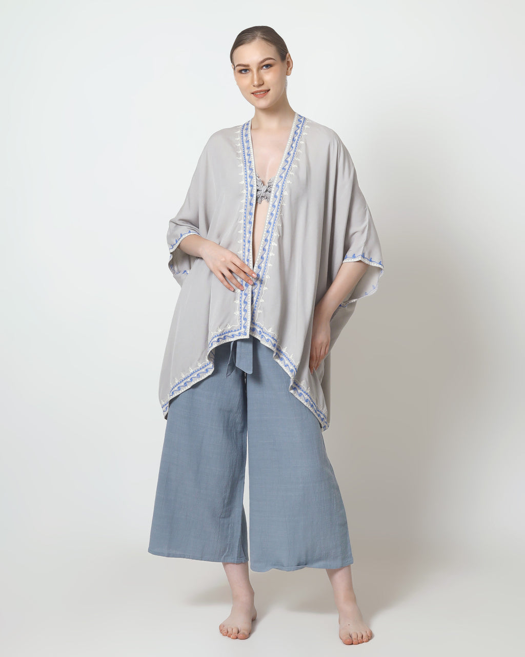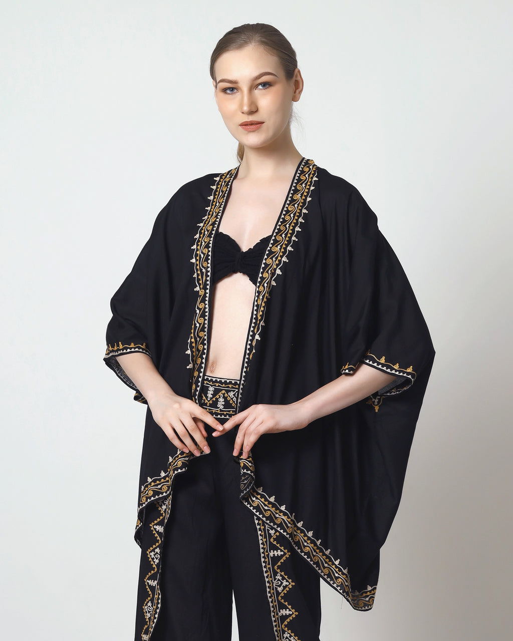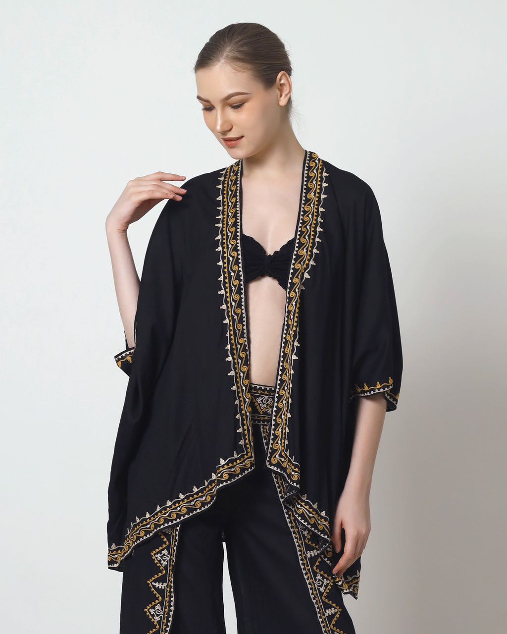The Phoenix cardigan features exquisite embroidery along its edges, adding a refined touch of craftsmanship to its classic design. This detail enhances both its visual appeal and texture, making it an elegant layering piece that elevates any outfit with subtle sophistication. Crafted for those who appreciate fine finishes, the embroidered edges provide a distinctive, polished look.